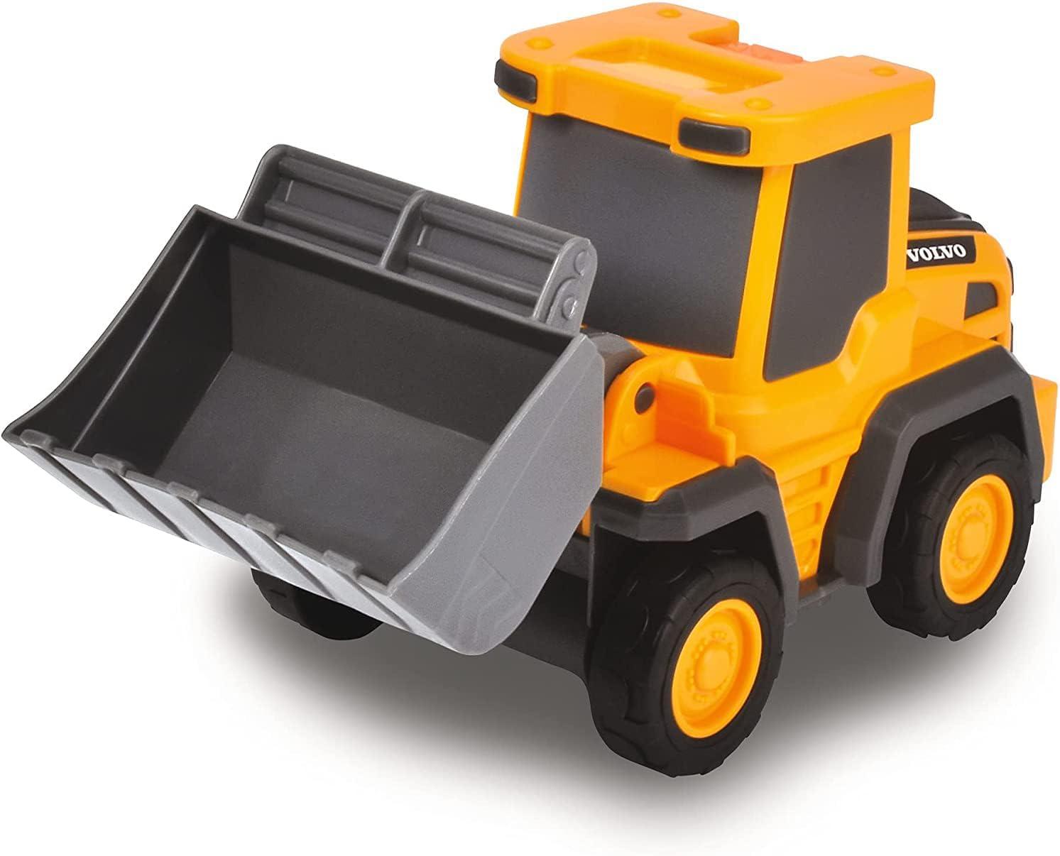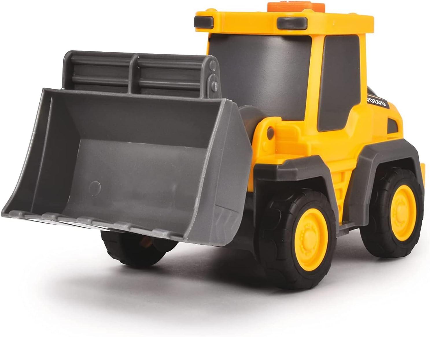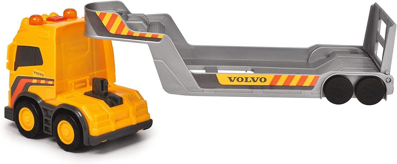 Dickie Toys Loader Truck: for budding builders. This Volvo-inspired toy set from Dickie Toys allows your little one to create their own fantasy construction site. The Dickie Toys Loader Truck Set includes a large truck with a loading surface, which carries one Volvo loader. The shovel arms and shovels on the construction vehicles can be moved, as can the tailgate on the truck. Even without the trailer, the truck can be used to create a wide range of imaginary scenarios thanks to its built-in light and sound effects. The toy set is designed for children aged 3 and above and is the perfect introduction to the exciting world of commercial vehicles. WARNING: CHOKING HAZARD — Small parts. Not for children under 3 yrs.